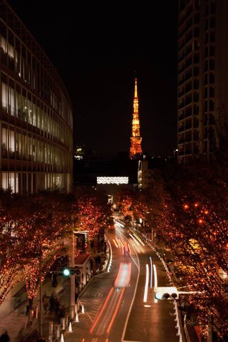 Roppongi, la Tokyo Tower come un enorme albero di Natale illumina la notte di Tokyo.